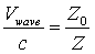 As we know, the electromagnetic wave velocity varies inversely with the wave impedance, and we also know that the wave velocity in the vacuum is the speed of light, and then we have following relationship:
